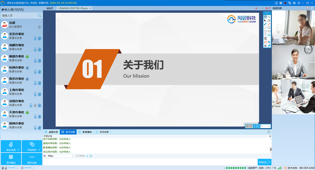 網(wǎng)會(huì)科技,使用智能網(wǎng)絡(luò)為客戶提供安全可靠、流暢清晰的全面視頻會(huì)議服務(wù),給客戶更好的體驗(yàn),網(wǎng)會(huì)使團(tuán)隊(duì)更容易協(xié)作、更容易溝通,歡迎咨詢:400-004-0268。